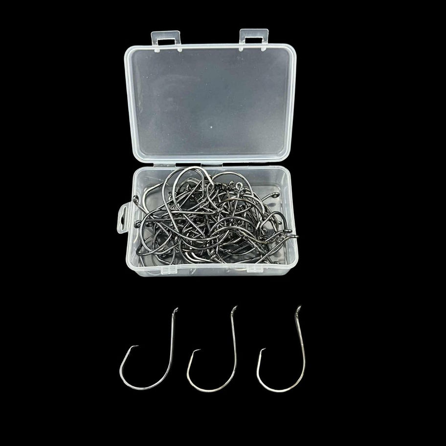J Hooks (50 Pack, Sizes 5/0, 6/0, 7/0, 8/0, 9/0, 10/0). For live and cut baits, come in a handy pack of 50.  come in a handy pack of 50.
